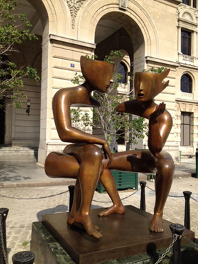 The d'Orsay was previously a train station that was scheduled to be demolished until it was converted into one of the most modern, beautiful buildings in all of Paris. The building is a piece of art all in itself and competes with the endless displays of world famous paintings and sculptures. From the 5th floor observation deck the entire building is on display, and I must confess that I did sneak a quick photo with my I-phone. The top floor displays some of the world's most famous impressionist paintings, and for 5 Euros our ears were treated to colorful commentary on each painting and its artist. Our lunch at the Café Campana gave us a taste of the Croc Monsieur at its finest — it was not just a ham and cheese sandwich, it was extra special under the huge clock whose hands no longer move, but the setting was spectacular none the less.