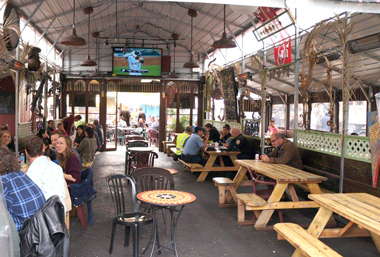 The San Francisco truck farm is located on the corner of 11th and Bryant Streets, tucked under the Central Freeway, and is appropriately known as Soma Streat Food Park. This location is much larger than its Peninsula counterpart and has outdoor tables with umbrellas, covered sheds with tables and chairs, and an old streetcar that found a new life outfitted with benches and tables.